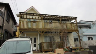 ウッドデッキ修理・メンテナンス 横浜市青葉区の12年目のマンション、ウリン材のベランダの直し・・高圧洗浄、直しのメンテナンス工事