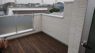 ルーフバルコニー 屋上に木の香りのテラス(高耐久処理材のLBウッド)が熱さをさます・・・横浜市港北区の屋上ウッドデッキの工事