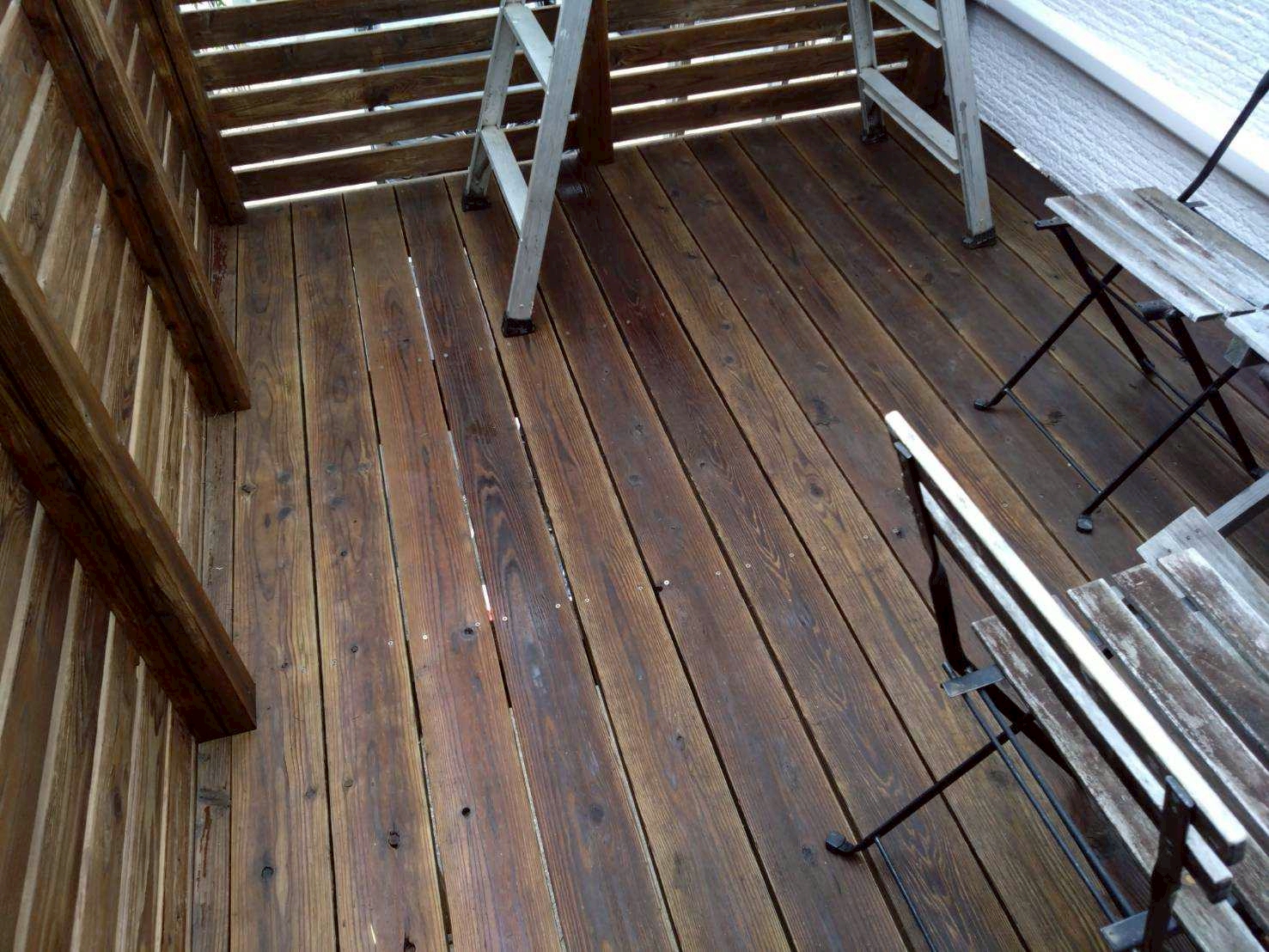 きれいにお使いのお客様の車庫上デッキを、高圧洗浄機で丁寧に洗浄しました。
