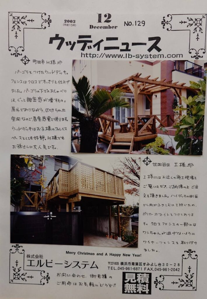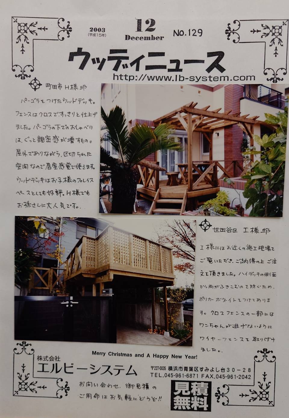完成写真のアーカイブ集(2003年・12月)・・町田市パーゴラ付きウッドデッキ、世田谷区の車庫上ウッドデッキ