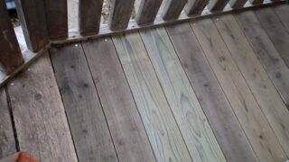 横浜市青葉区のウッドデッキの修理・・替えたのは、構造材と床材。高耐久処理で特許のLBウッドをそこに使う
