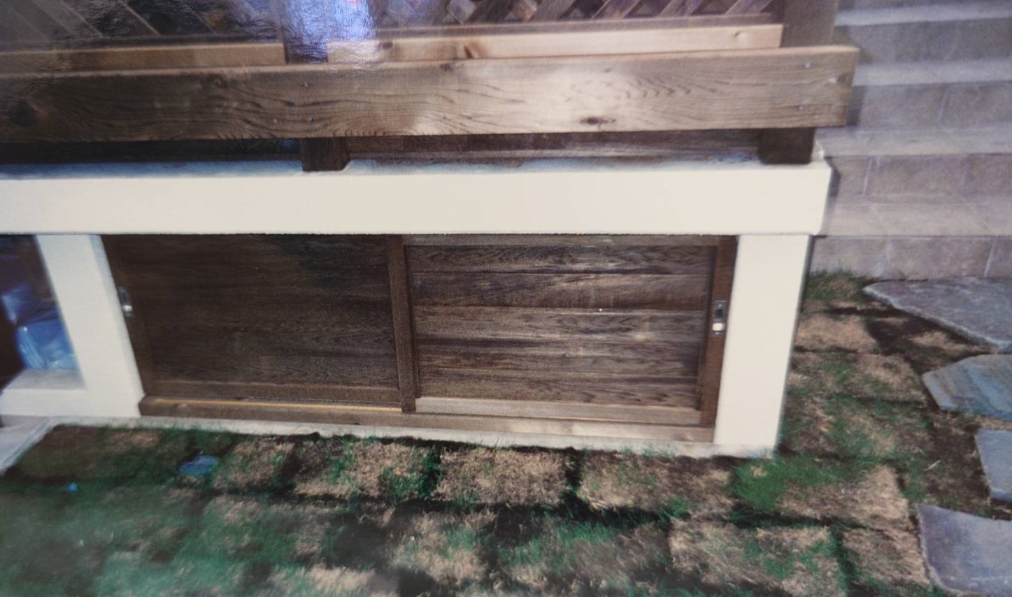 収納庫の扉は、熱帯材では固すぎて対応できにくいので耐久処理されたソフトウッドの針葉樹で作りました