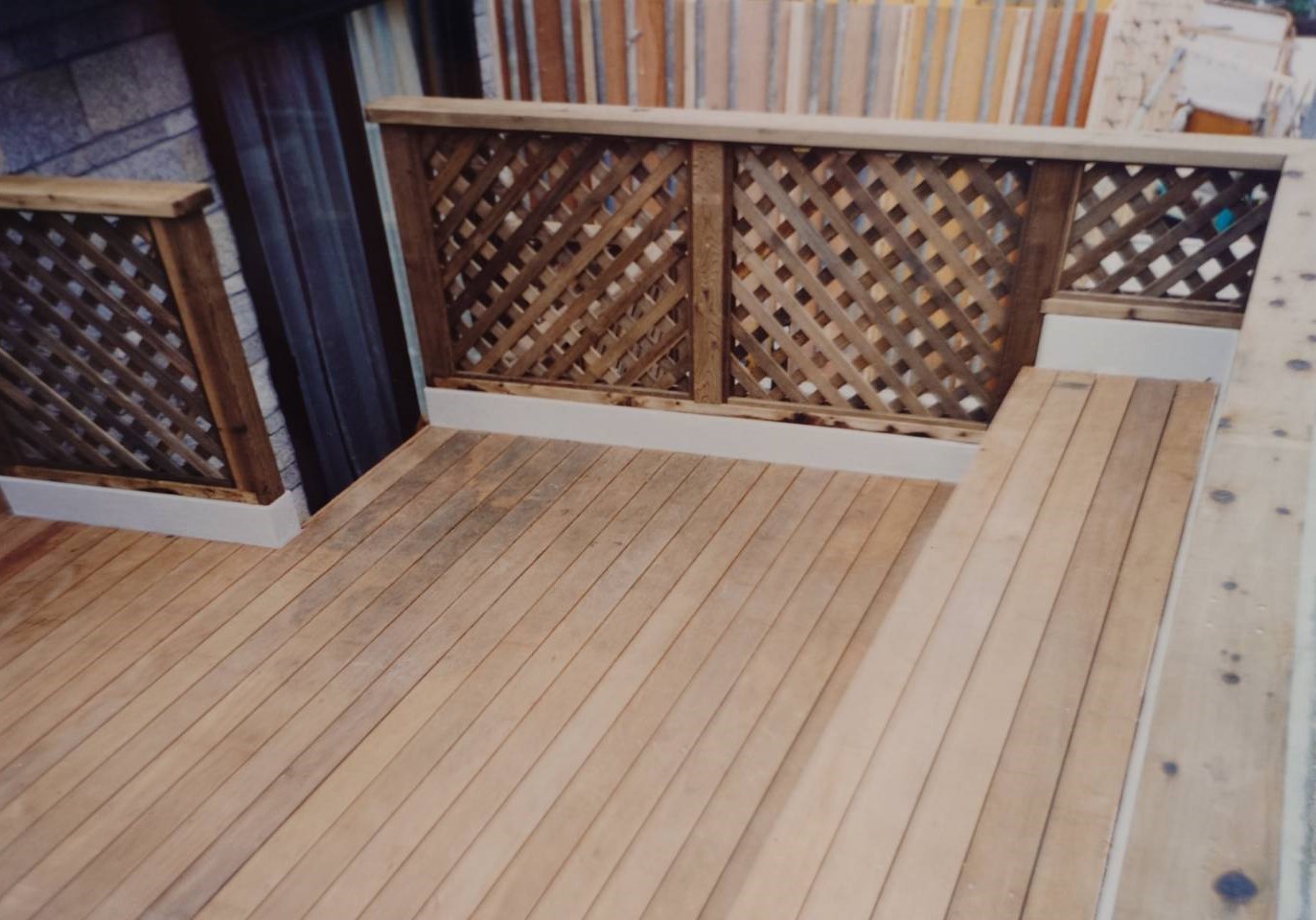 フェンスも高耐久処理ソフトウッドで作っています。ベンチは、イペですから気温の温冷が直接伝わってくるので座り心地は???