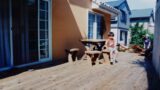横浜市旭区の車庫上ウッドデッキ(ガレージデッキ)は、デッキの下に屋根はつけませんでした。屋根をつけることができても、当時の発想ではかなり勾配が大きくなり、車にあたることになったためです。
