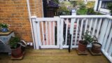 裏側の目隠しパーゴラも、2種のフェンス桟の使い分けで勝手口に造形的に無理のないデザインにしました。