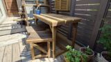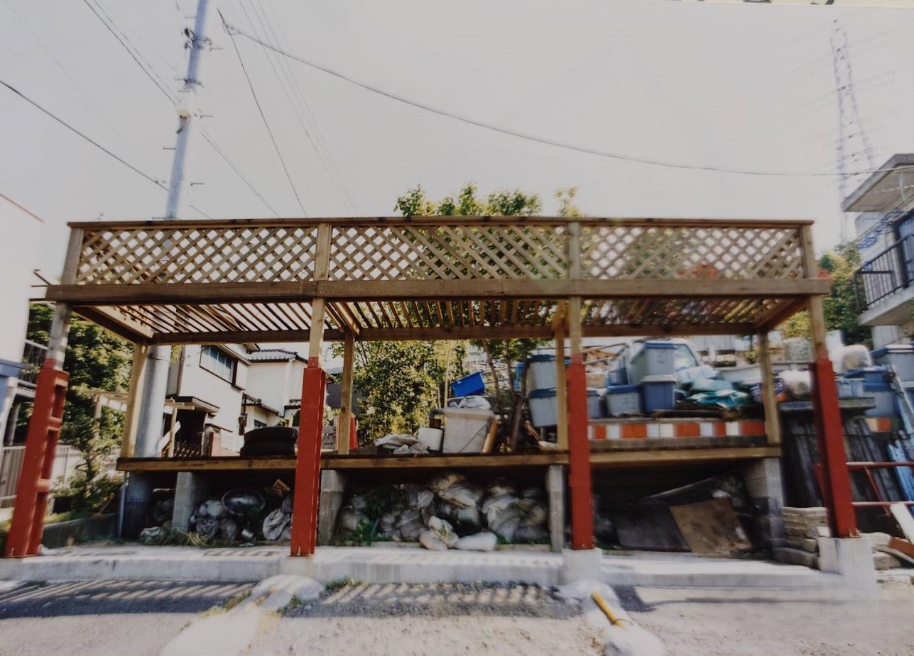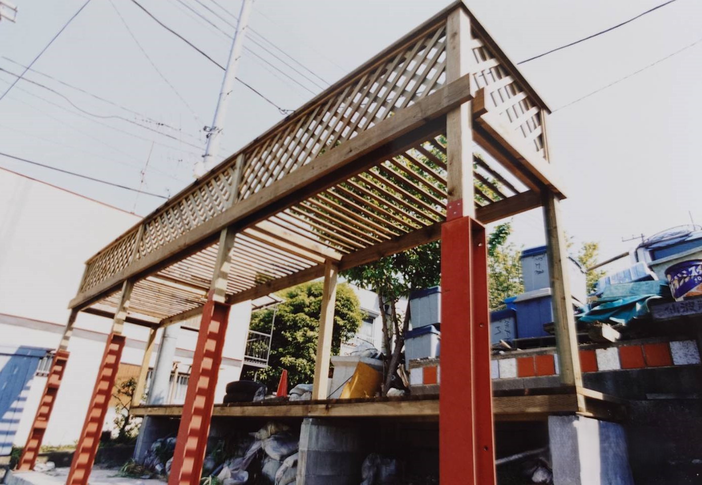 高耐久処理の材木に興味を持っていただいたお客様。これを、経営されている釣り堀で使いたいとおっしゃって、作ったものがこの荷物置き場です。