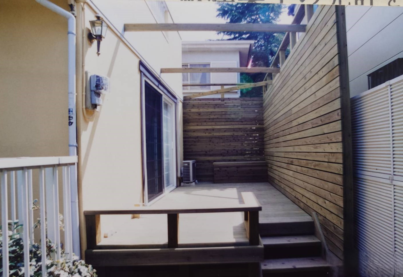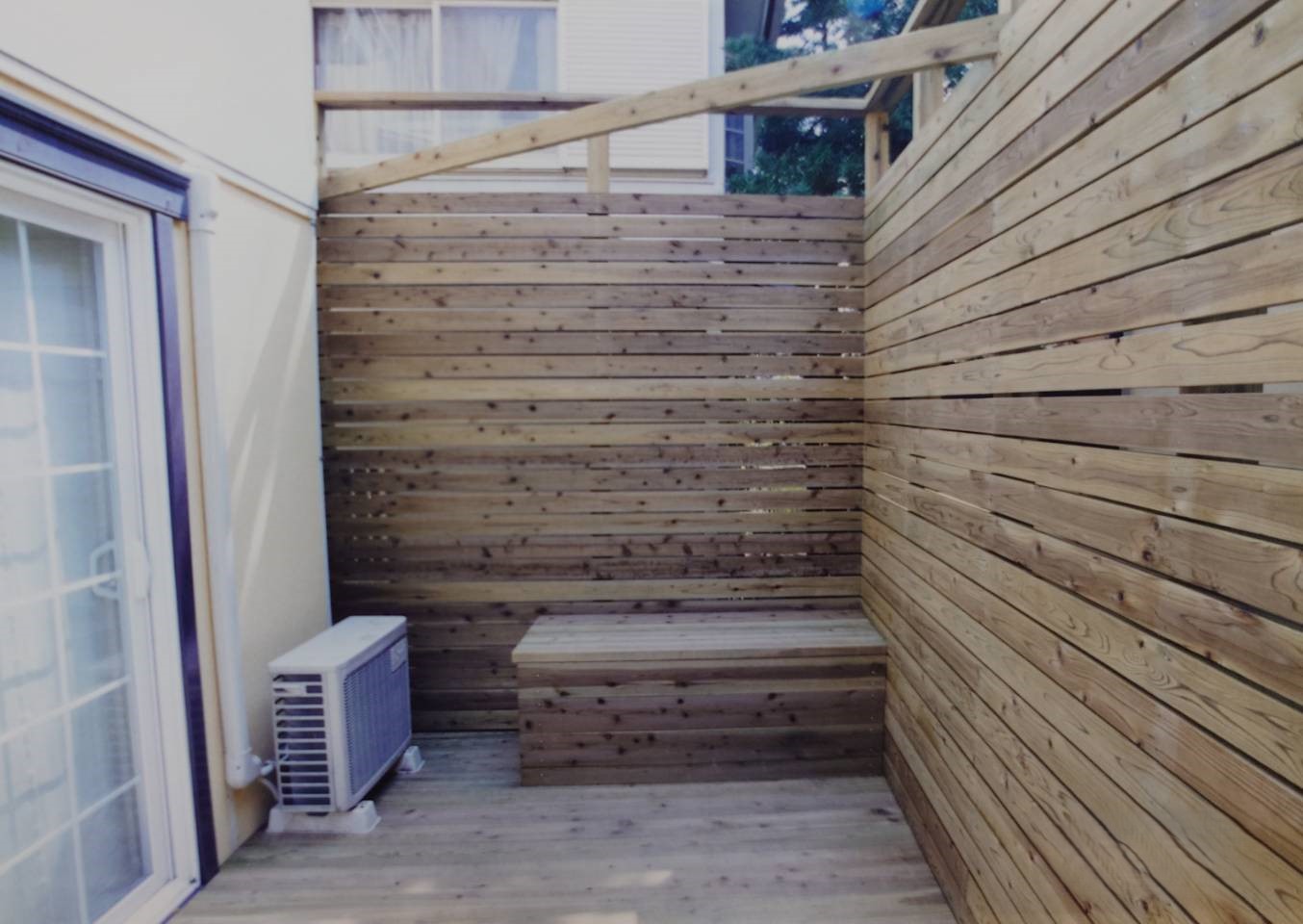 ウッドフェンスでプライバシーが守れるのです。これだけの幅があると、ウッドデッキでは御家族の集まりなどしやすいと思います。