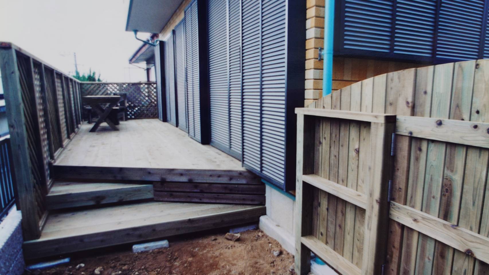 ACQ加圧注入のウッドデッキ。イスとテーブルもお作りしました