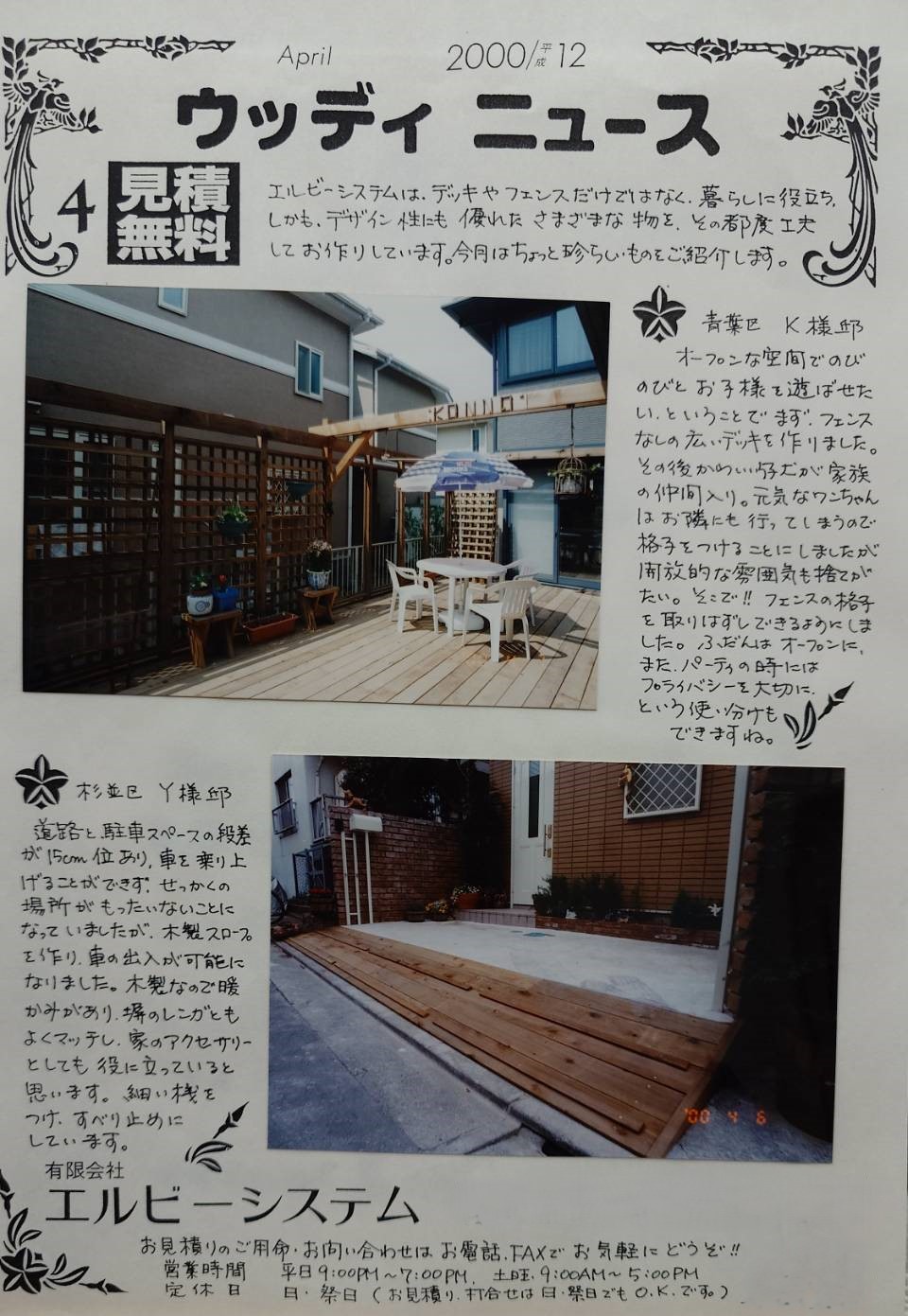 完成写真のアーカイブ集(2000年・4月)・・多目的のウッドデッキ・青葉区と杉並区の木製のスロープ