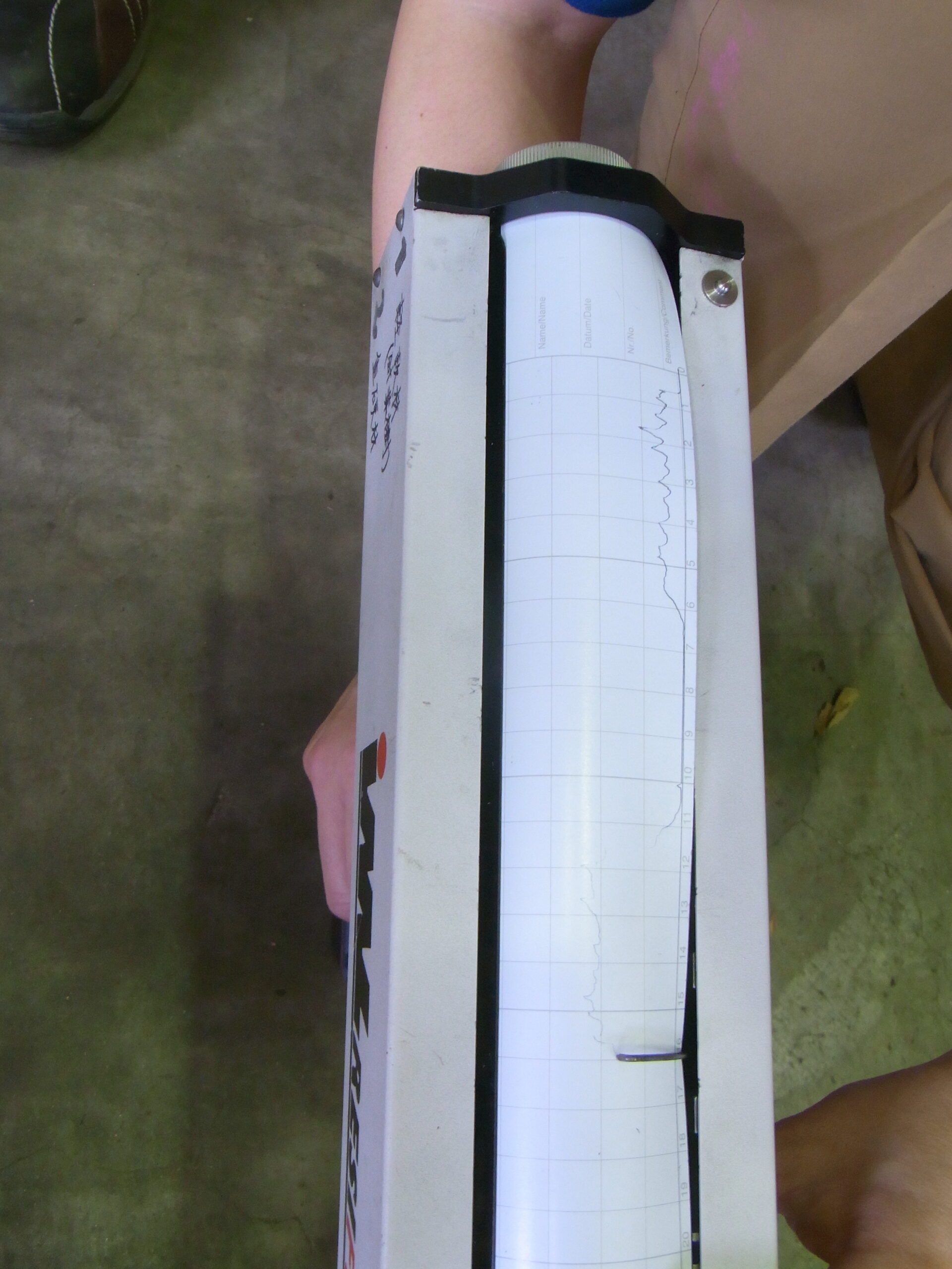 木材の腐朽深度をはかるレジストグラフ。こうした、腐朽が芯の方から腐ってくるものには、効果的な診断方法です。