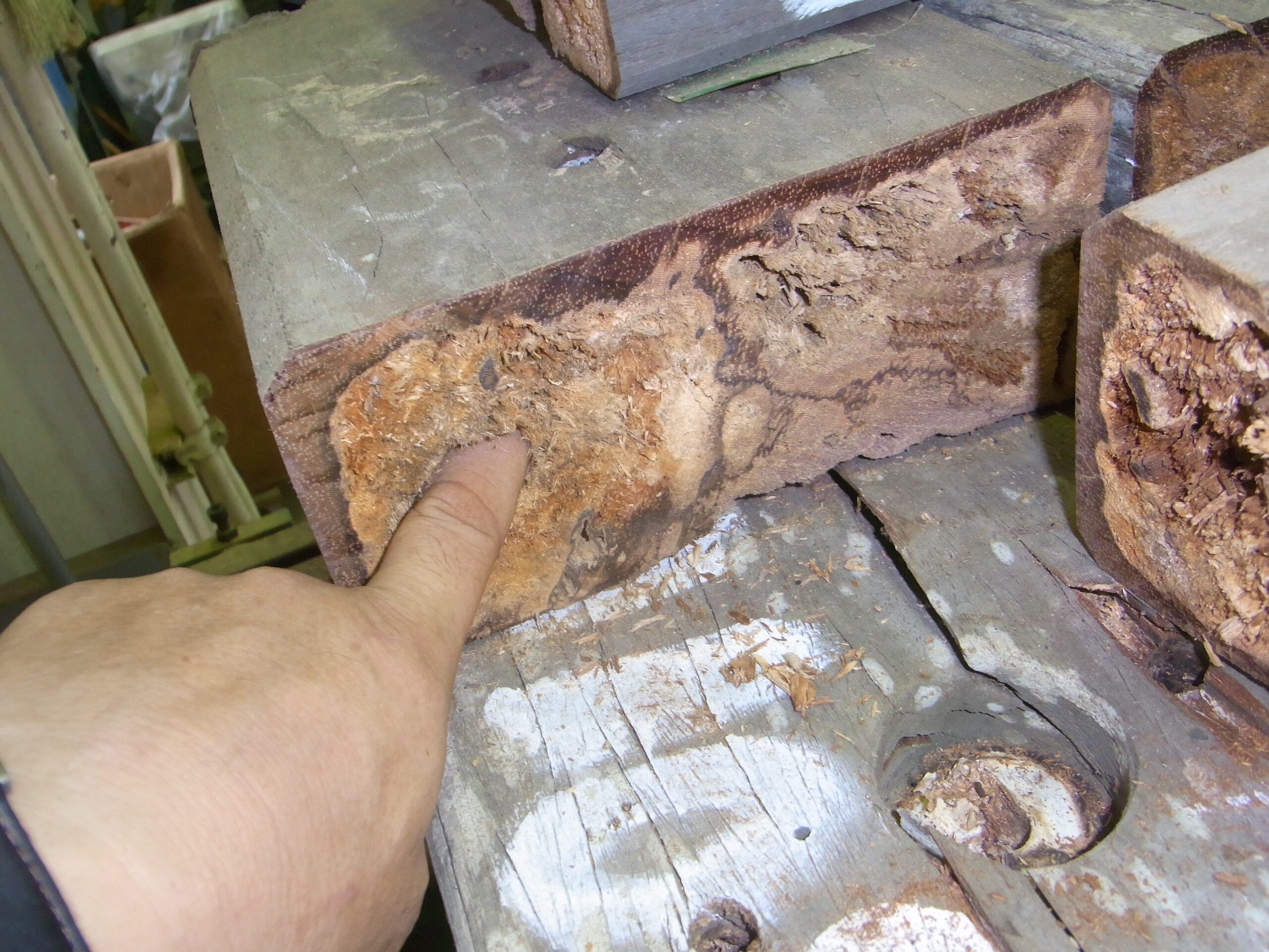 腐朽部分は、柔らかく、空隙があって触った感じではスポンジの様だった。