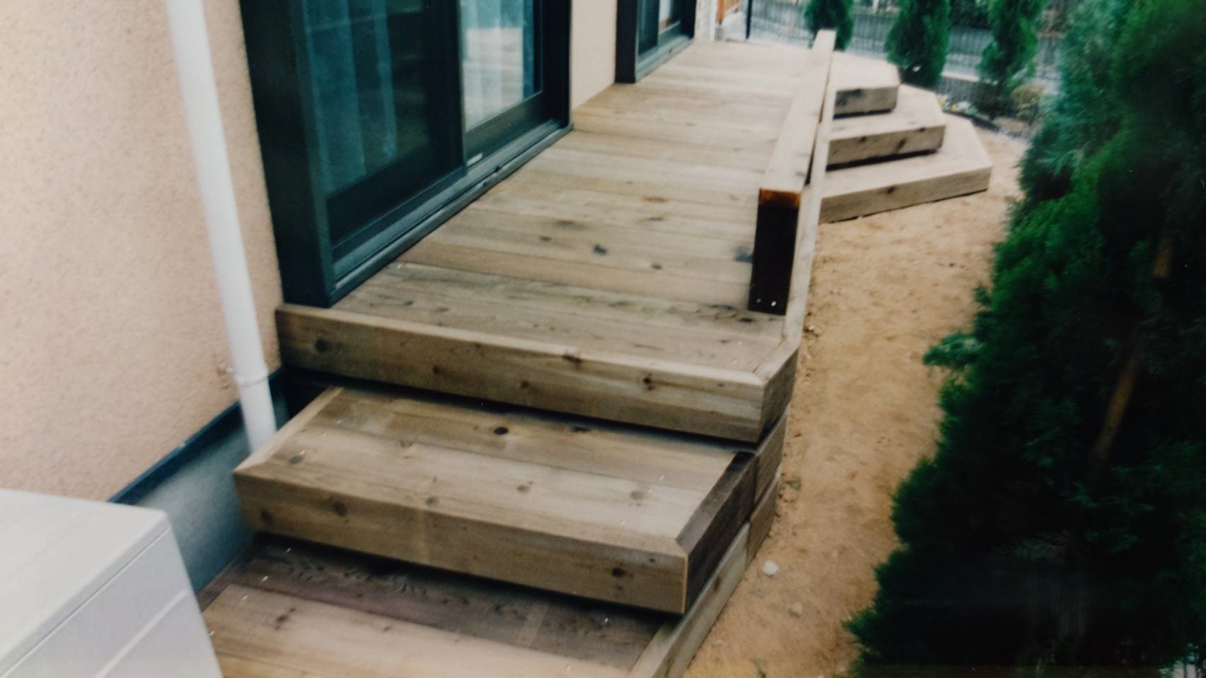 庭への入り口でもあるし、階段状のウッドデッキが独特の空気感と、独特なくつろぎ時間を作り出すと思いました。