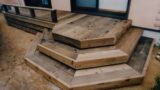港北区で2階に施工したベランダをは木製。高耐久処理国産天然木で施工。切り込んだフェンスの坪庭風のところは、下から竹が生えています。竹林のような雰囲気。