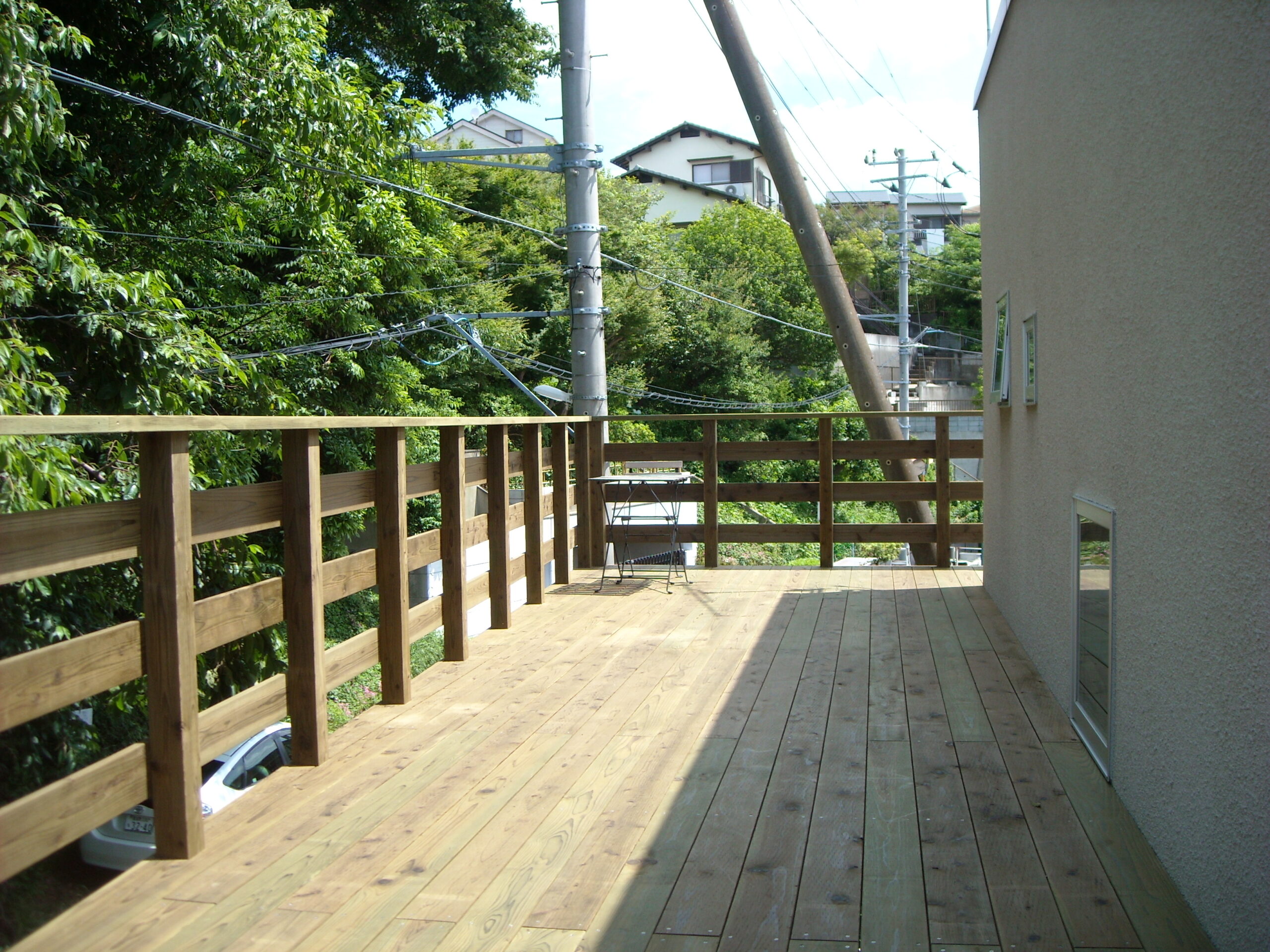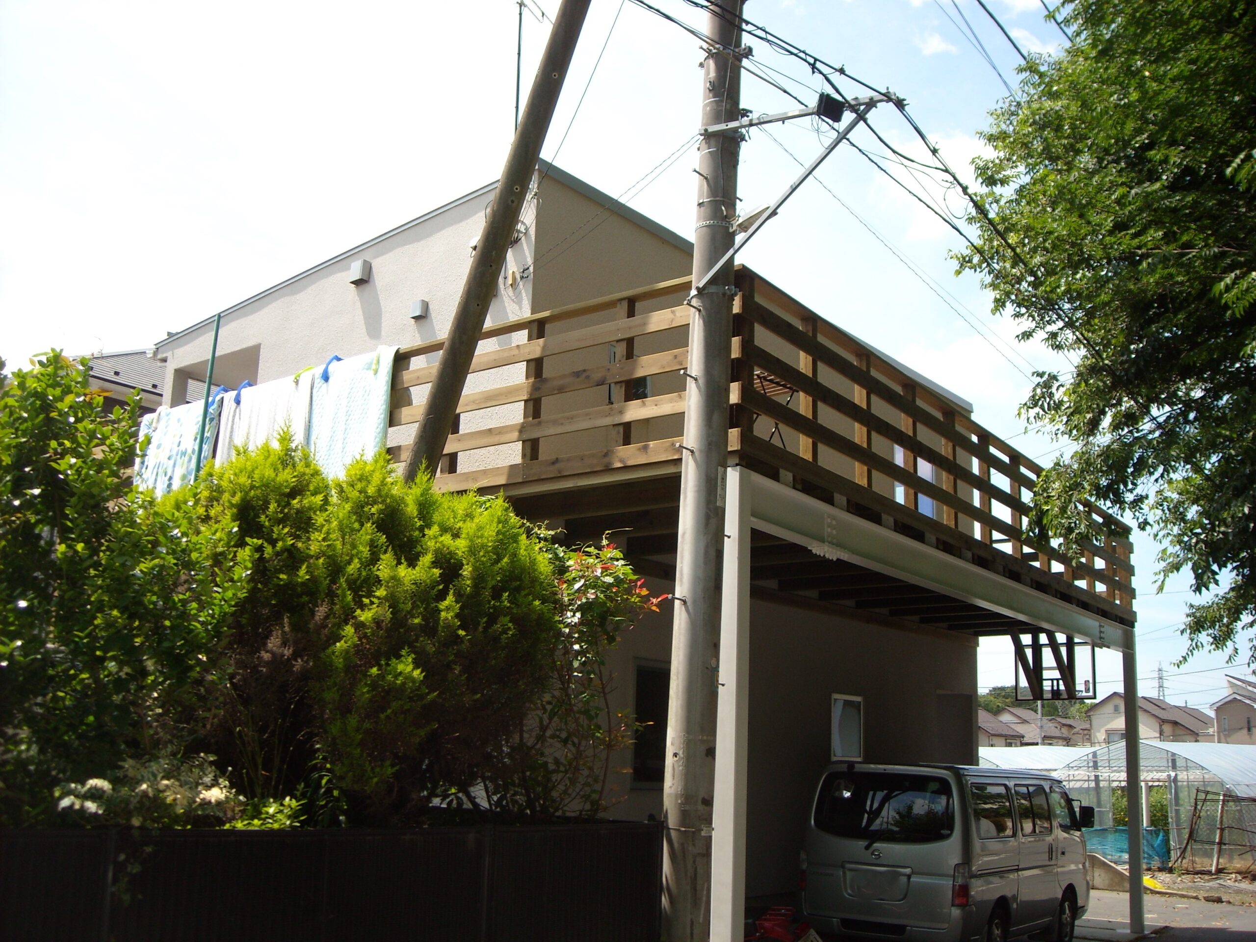 ペットが吠え、人がバスケットで遊ぶ自由自在の車庫上ウッドデッキ(ガレージデッキ)・・習志野市