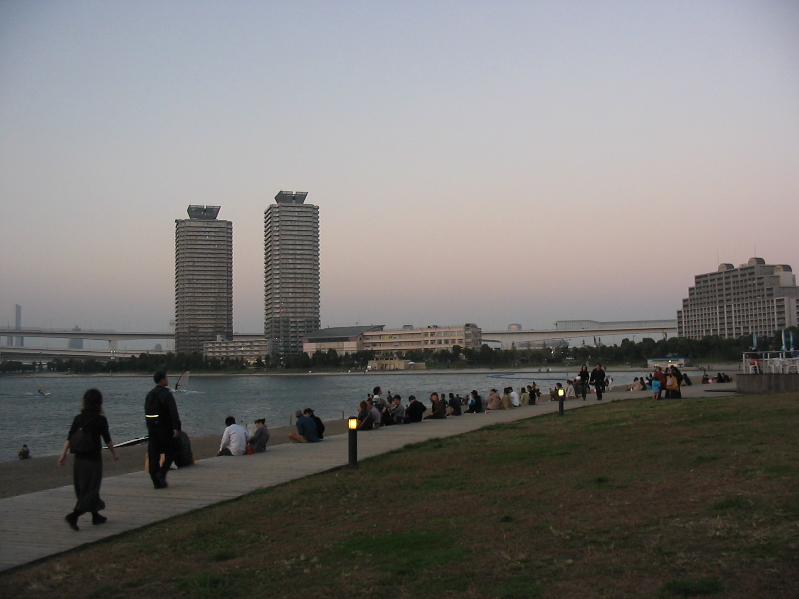 同じく2003年11月頃。この部分はスギで出来ていた。黄昏時、多くの人が腰かけていた。