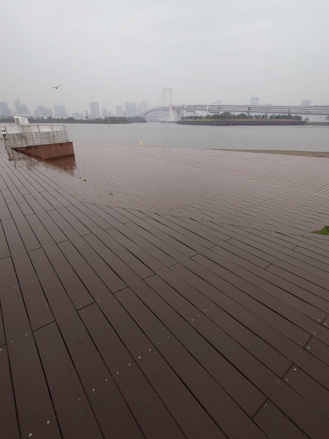 2024年4月、雨の中、お台場の人工木のボードウォークを見に行った。