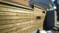 波付き加工された、スギの防腐注入であるが、波付き加工は滑らないようにと、凸凹をつけたのだが、大きな効果はなかったように思う。
