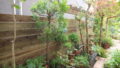 上尾市のばるこにーと縦桟のフェンスそれにパーゴラ。ぐっと落ち着いた雰囲気で、和のしっとりした情景を作っています。