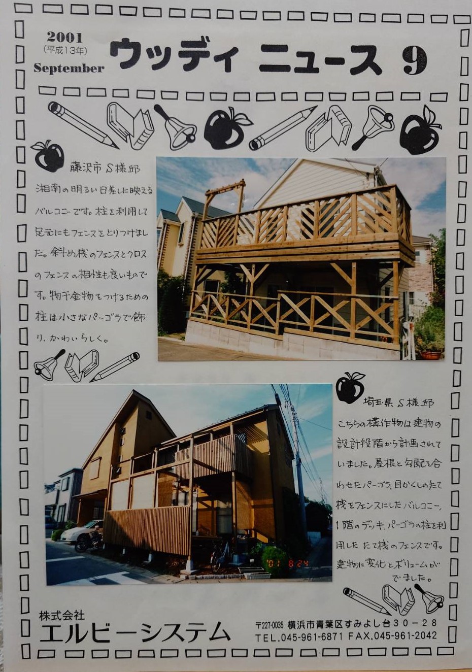 藤沢市の木製バルコニーは外周のフェンスのクロスフェンスが構造を多少補強してくれます。