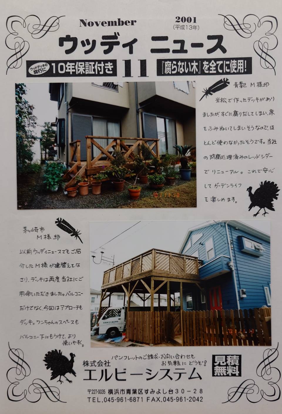 横浜市青葉区のウッドデッキは当時ウェスタンレッドシダーに加圧注入のACQで対応。その頃は、米松が脂っぽいから耐久性があると思われていたころで、このころから少しずつ外部での木材の耐久性についての関心が強まってきたようです。