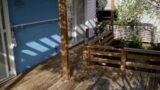 下の茅ヶ崎市の車庫の上ウッドデッキは、家の外部を全部木のエクステリアで作りました。