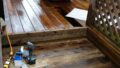事務所のウッドデッキは、はや24年経過。12年目にメンテナンスし、去年2024年メンテしました。