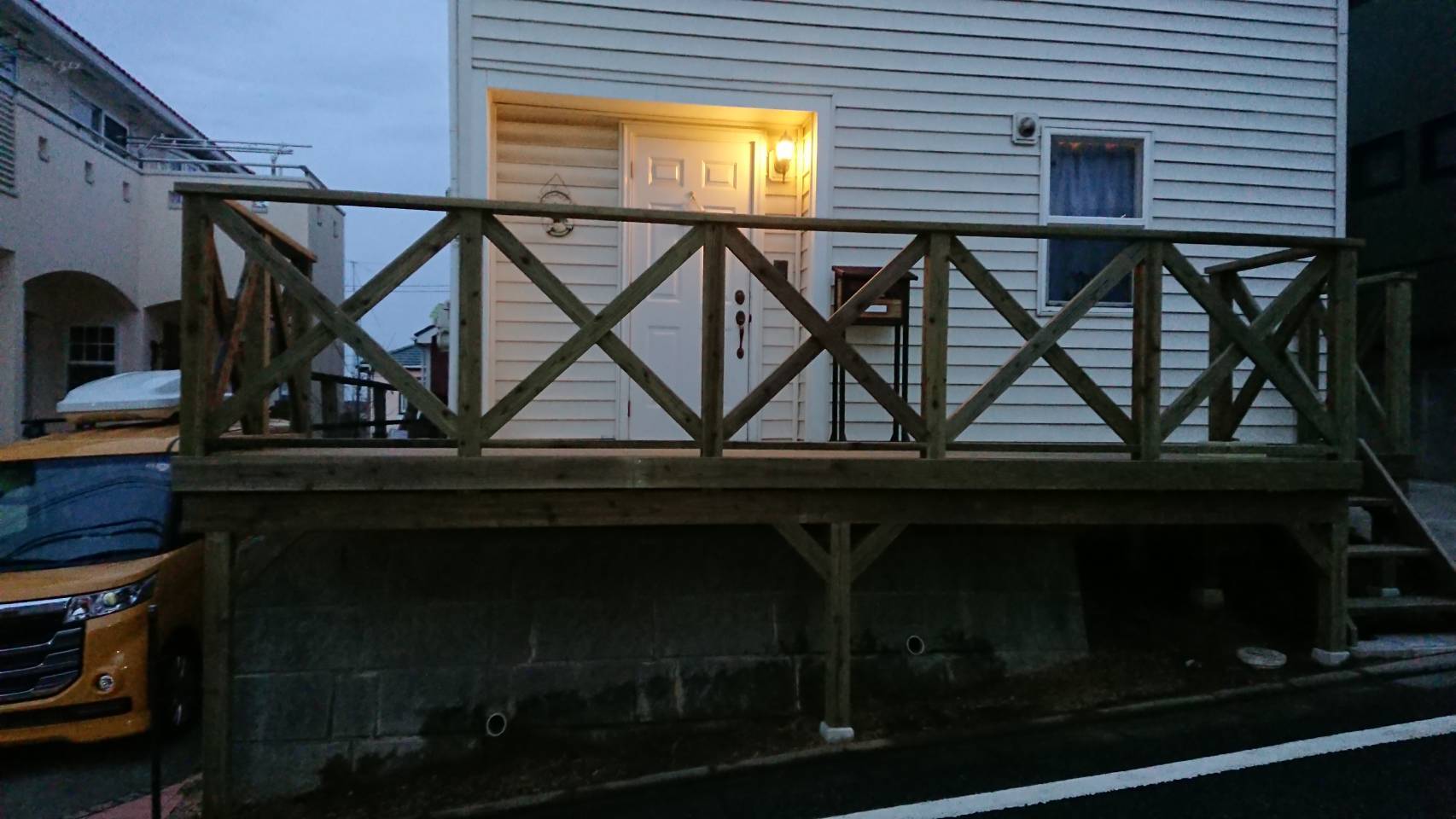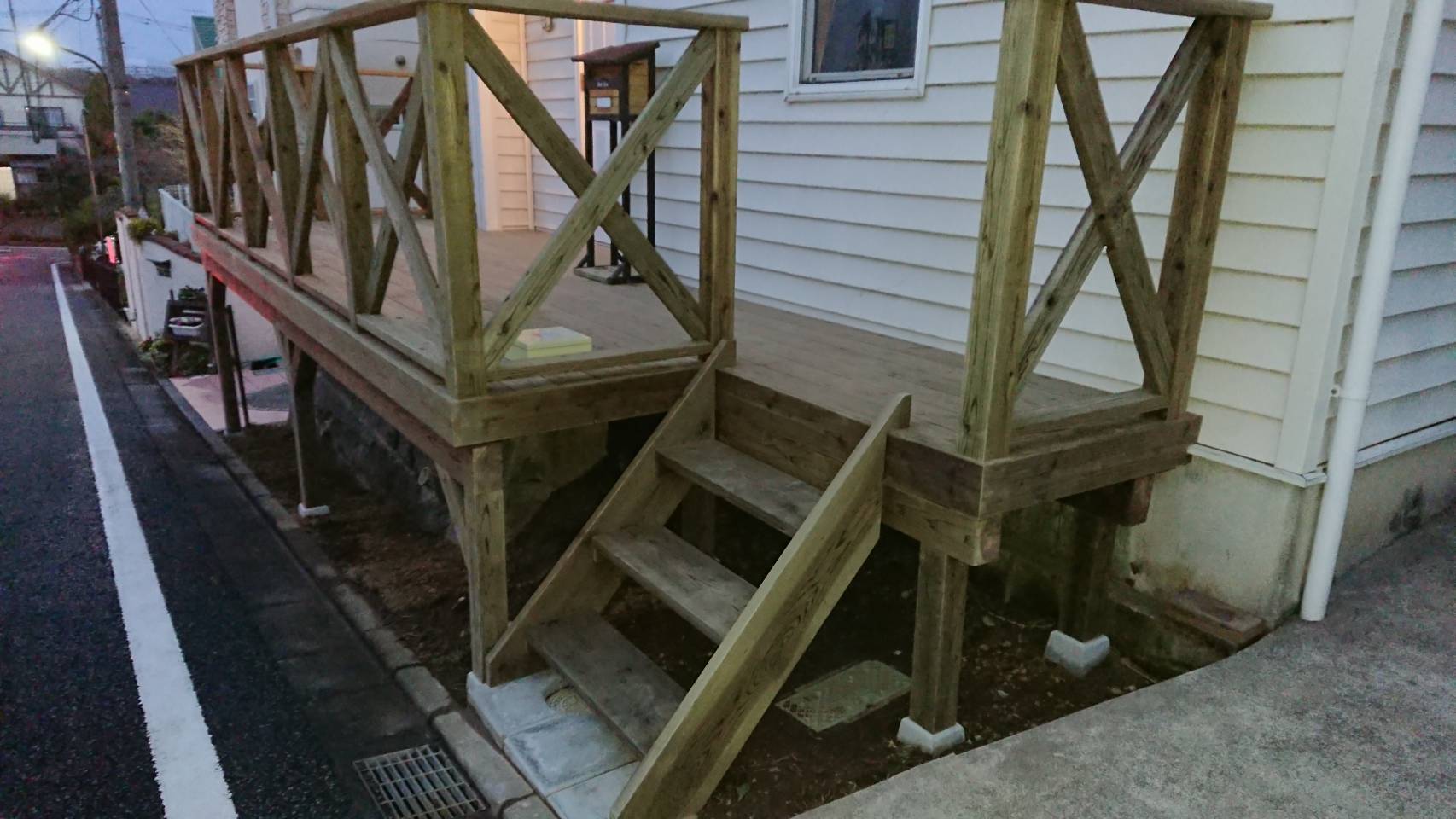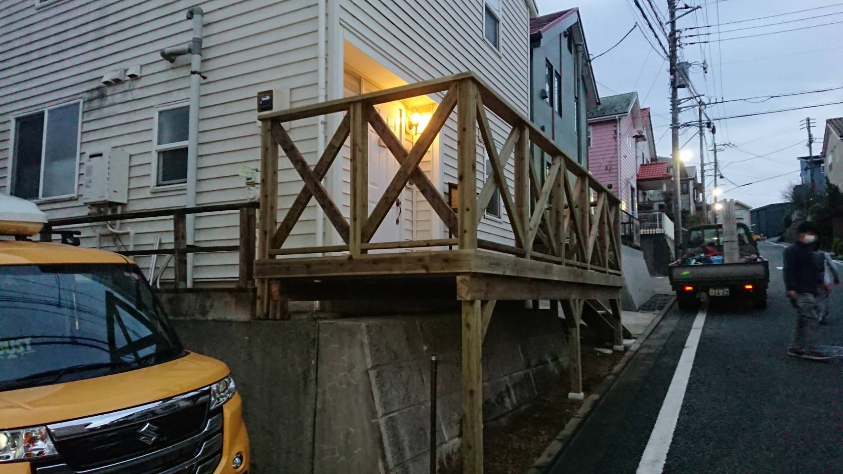 日暮れて道遠し・・町田市の玄関アプローチのウッドデッキ