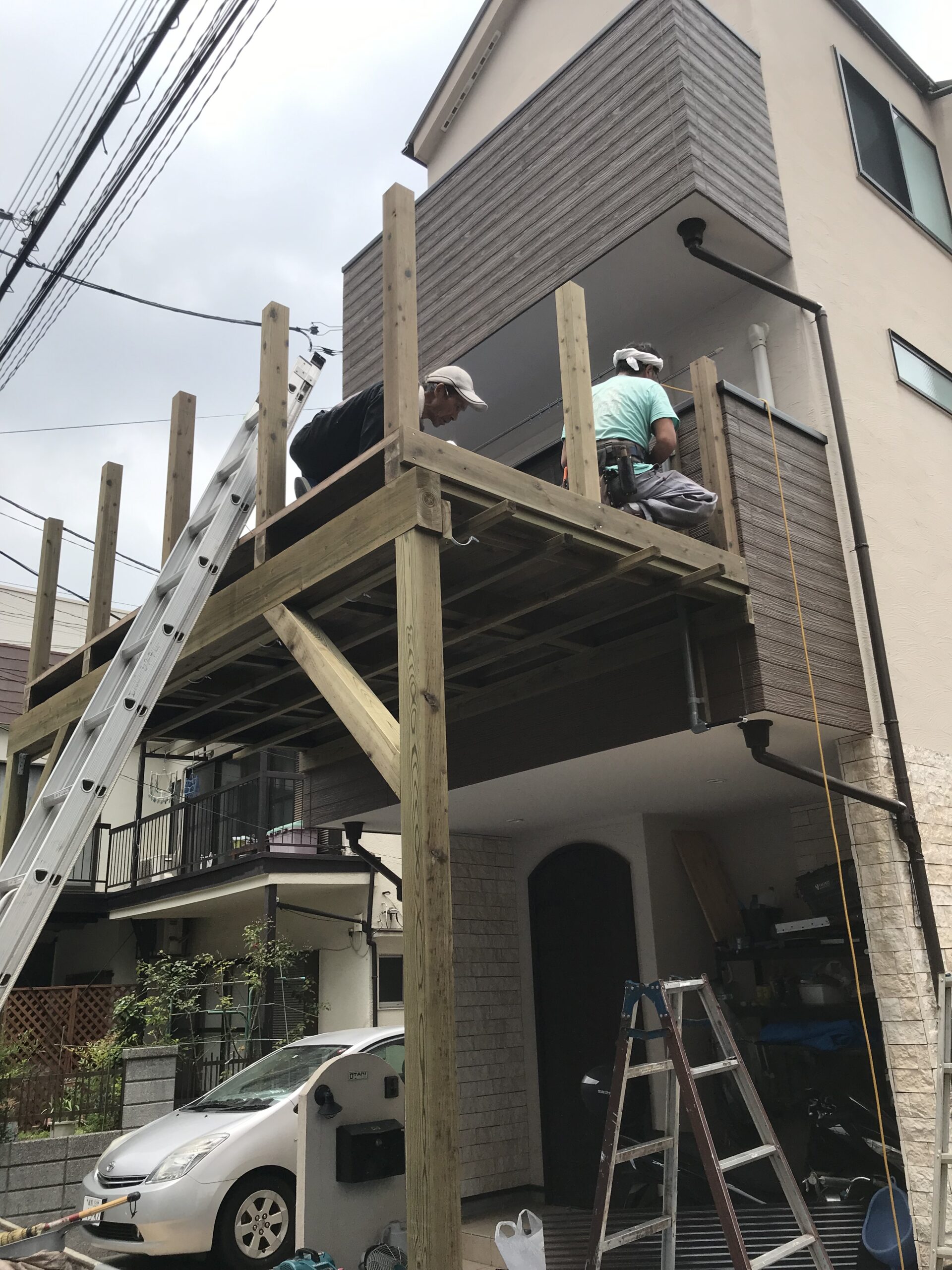 少し、ベランダを持ち出した。2メートルほど。そして屋根の下地も、作った。