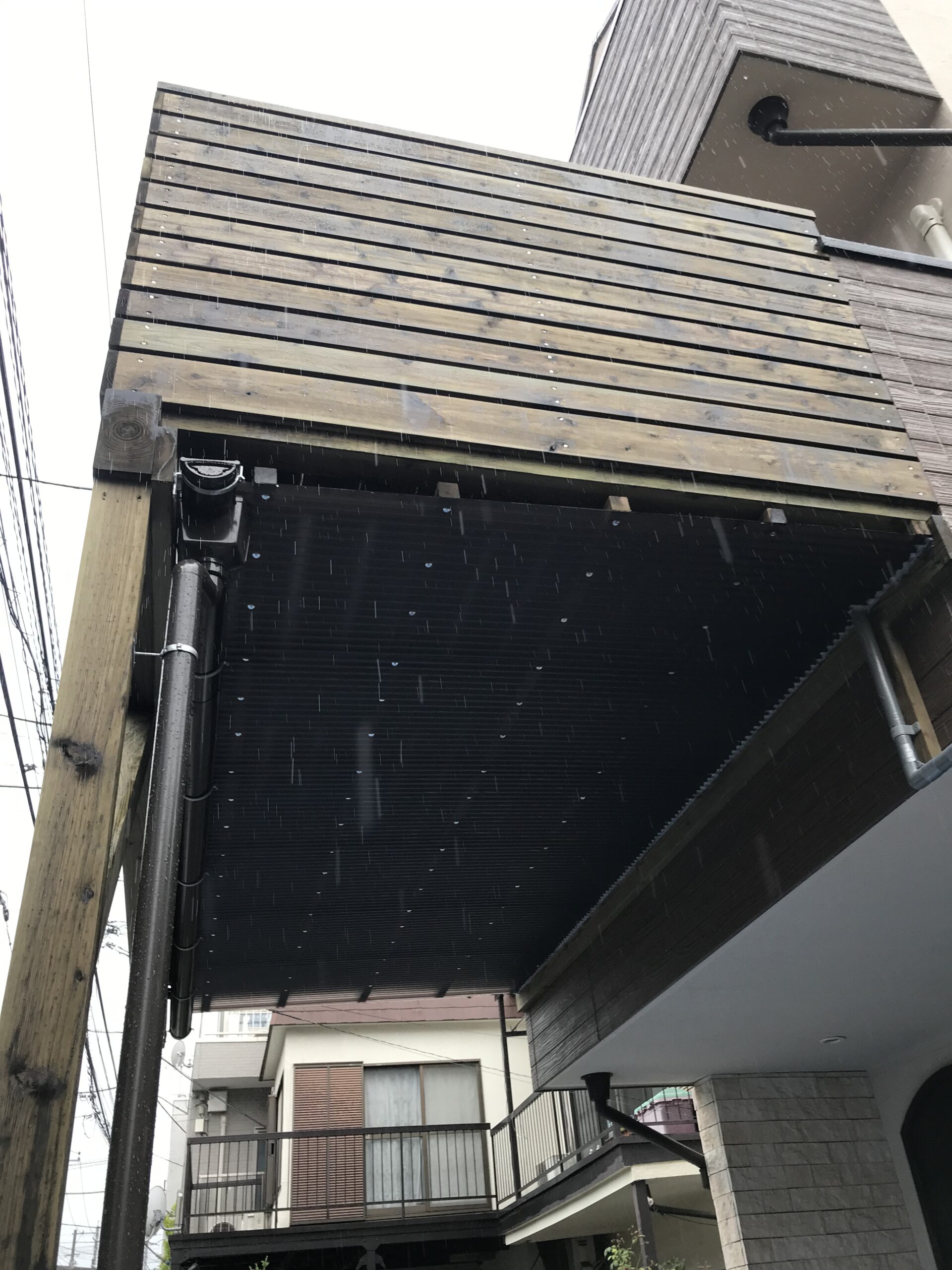 ポリカの波板を下から貼る。傘釘の打ち方を昔研究したが、それは、今、他業者もまねている。