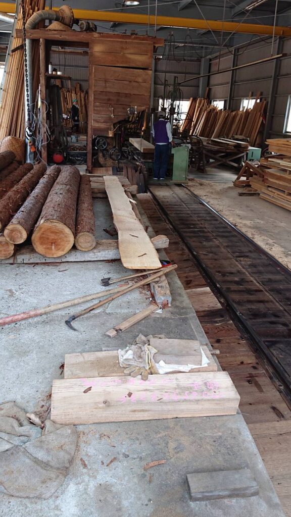 弊社は、祖父からの代の付き合いの製材屋と取引をしている。こうした丸太から挽くことが殆どで少量であればいい材が取れる。