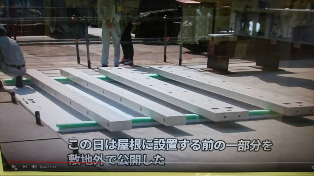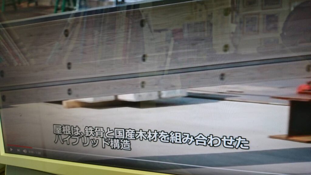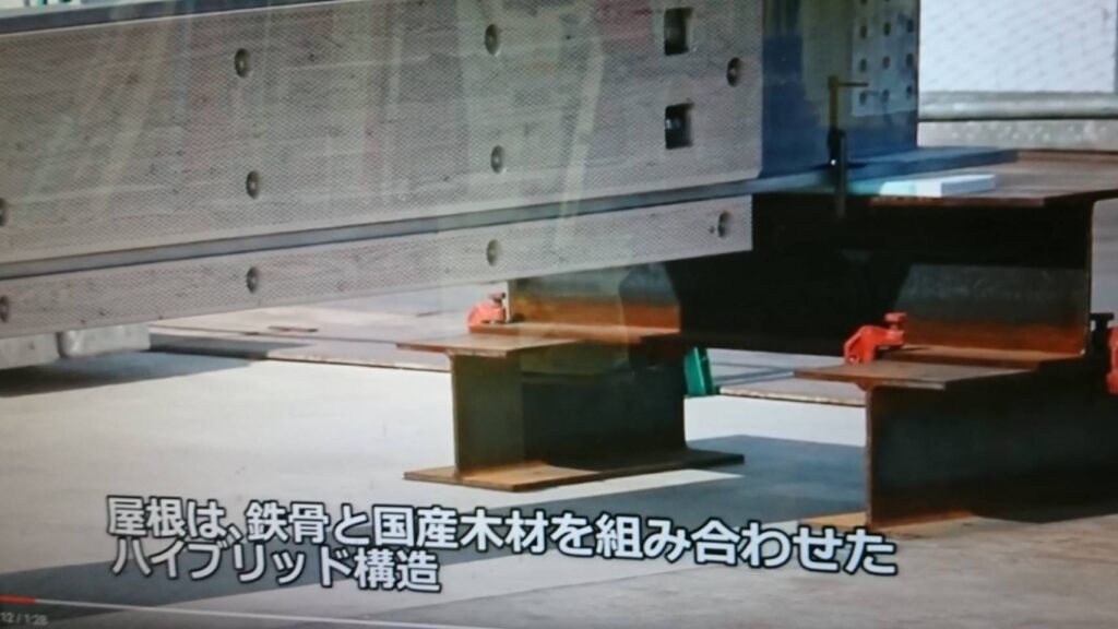 2021年、コロナ禍の中に開催された2020東京オリンピックのメイン会場の新国立競技場で外部の屋根掛かり部分が、国産材のスギ・ヒノキ・カラマツの3樹種を使いつつ、外部使用での耐久化で、JIS基準のK4を満たす耐久処理の大梁材がテレビには映されていた。