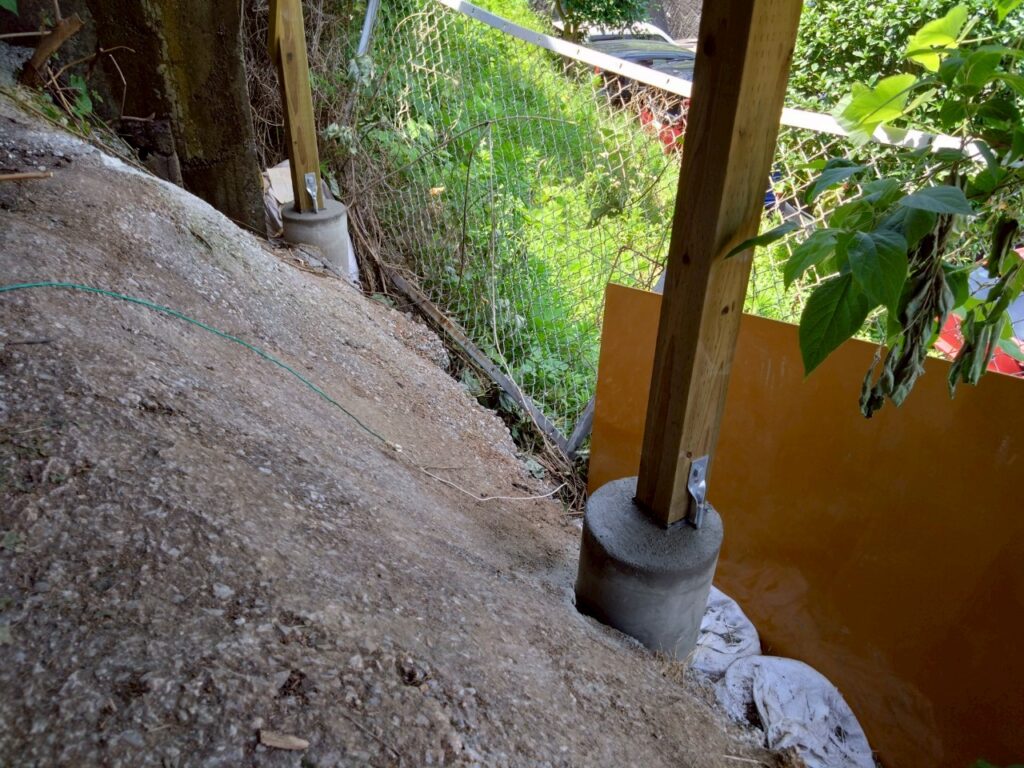 木材の木口の水の吸い込みが激しいとわかっているので、いきなりコンクリートや土に接触させない。