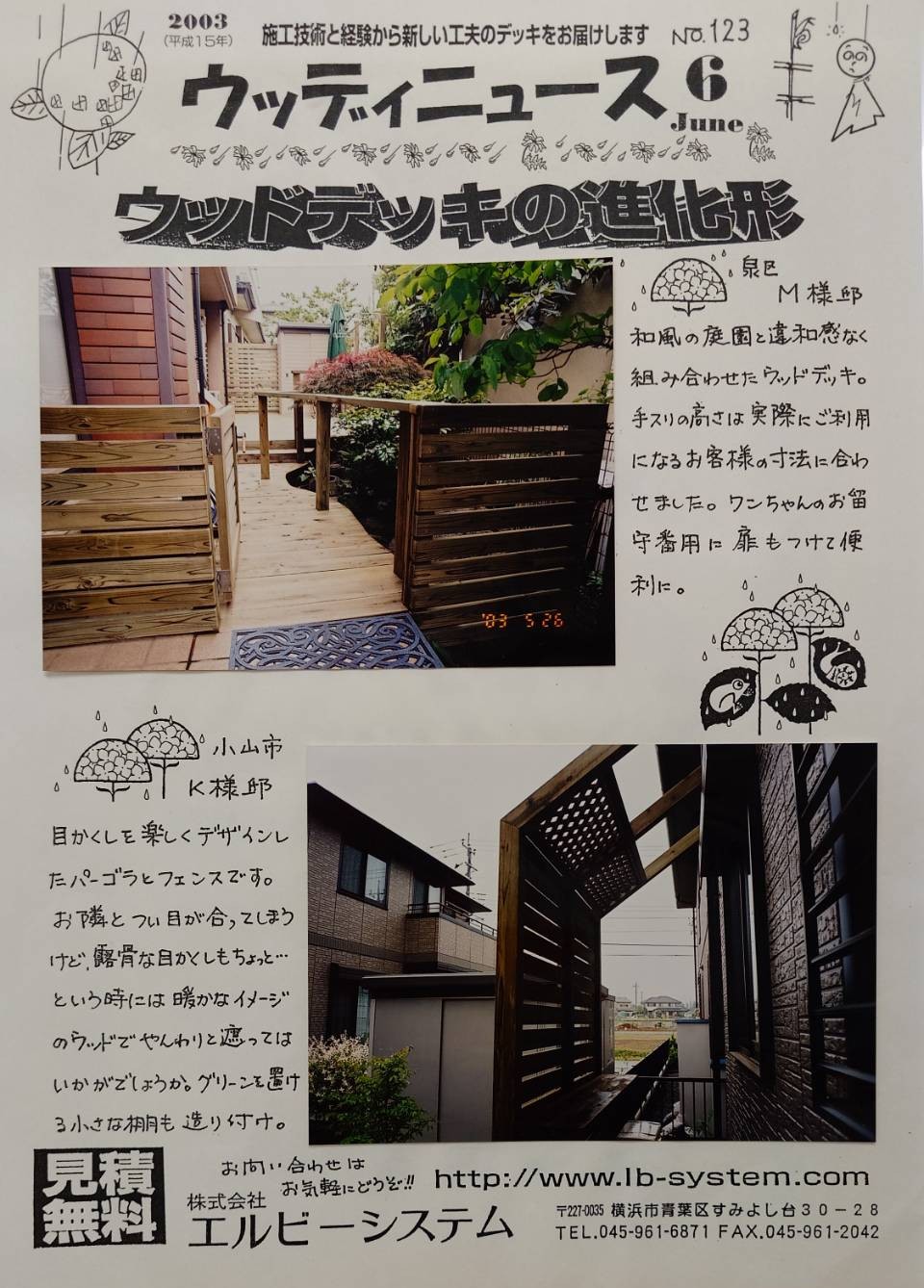 完成写真のアーカイブ集(2003年・6月)・・横浜市泉区の和風ウッドデッキと栃木県小山市の玄関前パーゴラ・フェンス