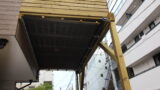 横浜市青葉区の天然木に加圧注入で腐りにくくさせた木材で作ったウッドデッキと高いフェンス。
