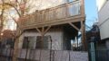 茅ヶ崎市のハイデッキの車庫上デッキとお隣のコンパクトなウッドデッキ、木製フェンス。