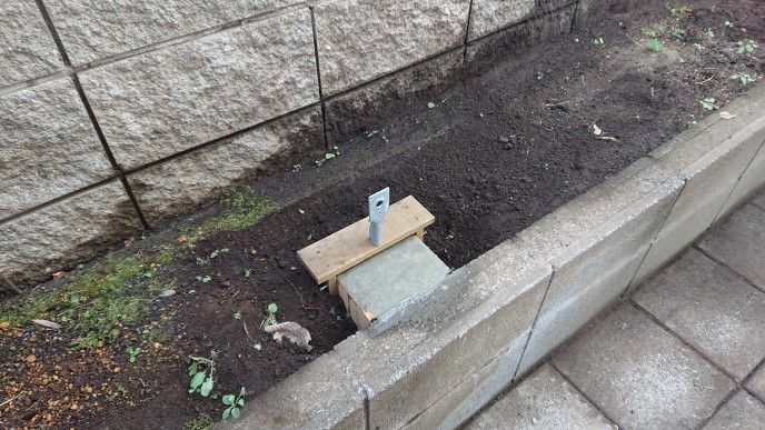 ウッドデッキの柱位置に基礎造り。金物は溶融亜鉛メッキ