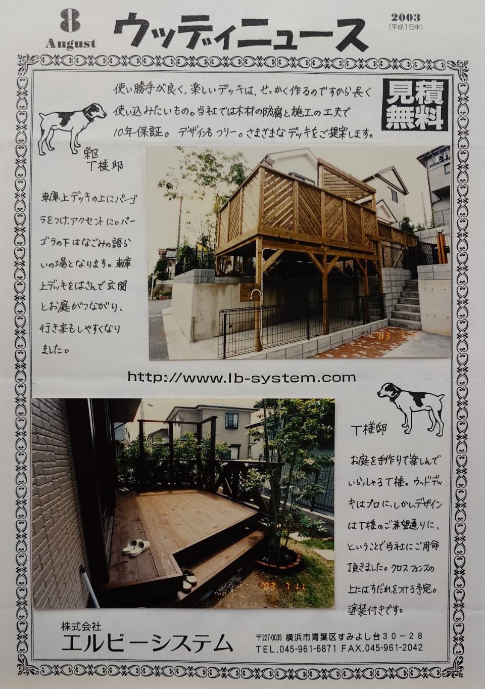 2003年は、今、思うとウッドデッキもバリエーションの多かった時代で、デザイン多様の中で社員職人の施工技術も随分鍛えられてきたと思います。