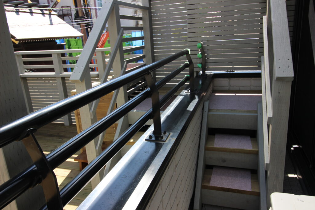 この階段は、車庫上デッキと既存ベランダとつなげるもの