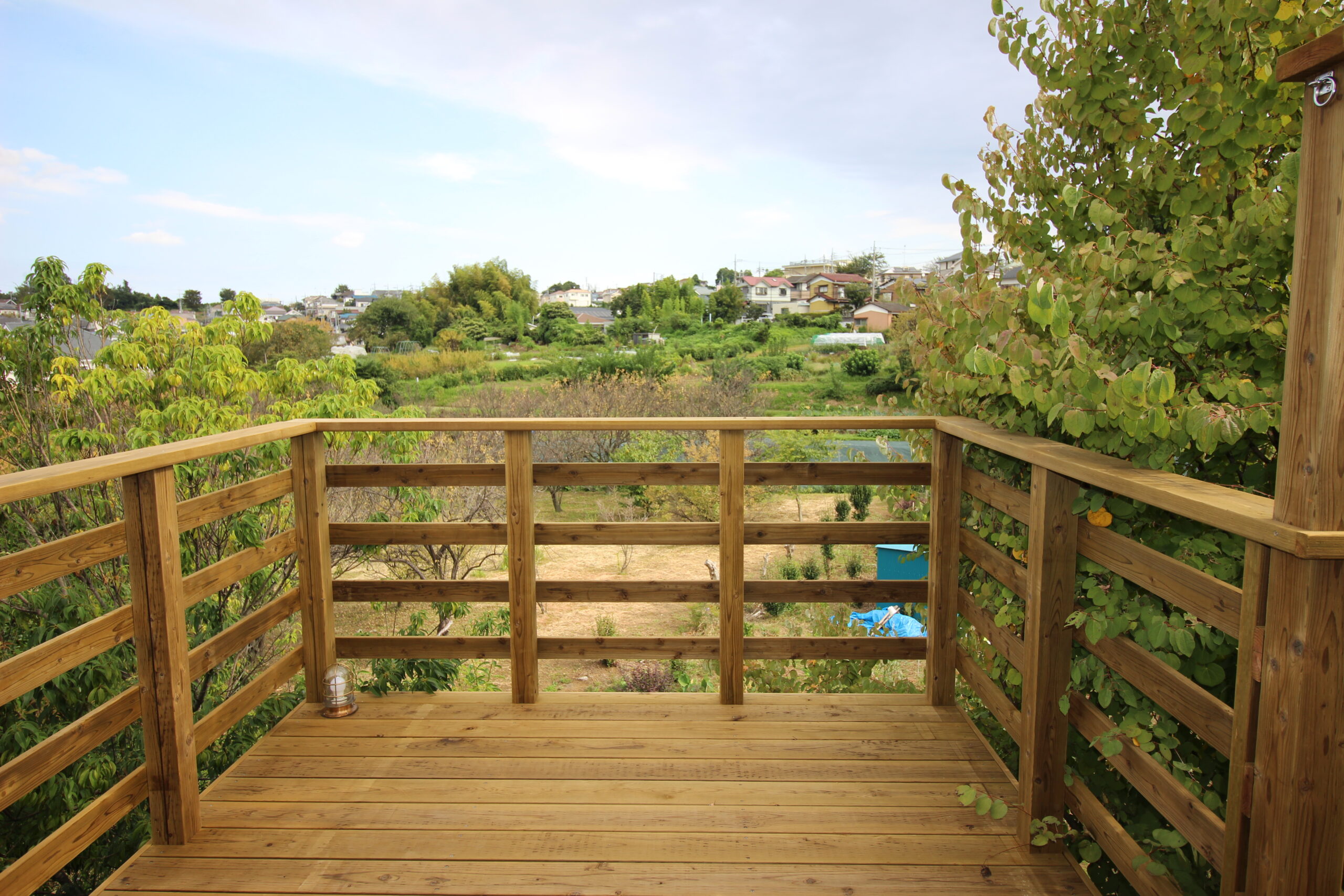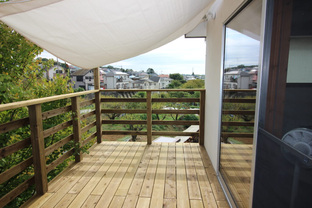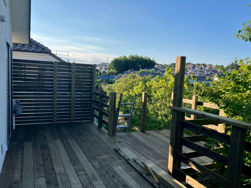 町田市の田園風景が残る静かな住宅街に、四季の移ろいを感じられる「ベランダ風ウッドデッキ」を施工しました。