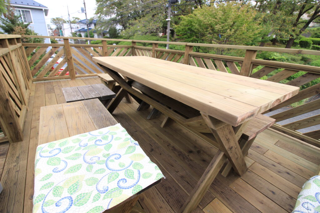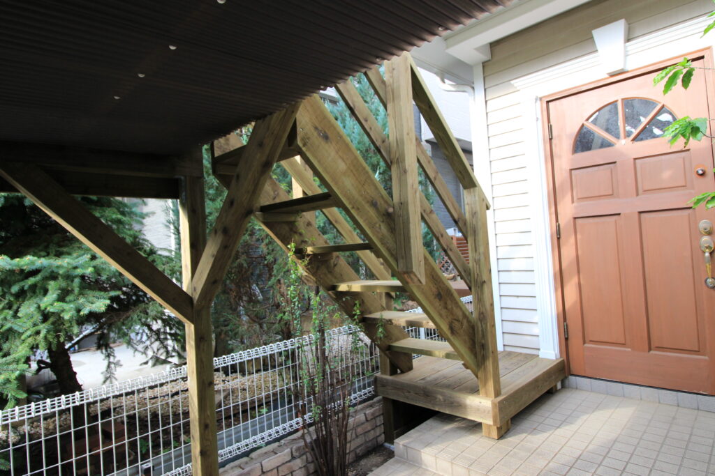 玄関から1分の集いの間、非日常のウッドデッキ生活・・・横浜市の青葉区の緑地にほど近く。 ガレージデッキ X Facebook はてブ LINE コピー 2025.12.20 穏やかな天気は、こんなウッドデッキ上では、ごちそう。 階段を上って扉を開く そこに、ベンチとパーゴラ。座ると少し高い。新緑のくっきりした植物の色彩が眼に優しい。 エルビーシステム ウッドデッキのお役立ちコラムデッキ一筋30年、代表太田が一所懸命執筆中!