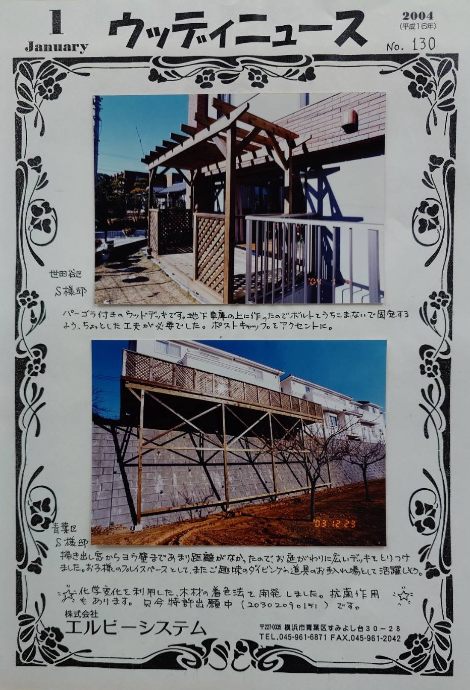 完成写真のアーカイブ集(2004年・1月)・・世田谷区のパーゴラ付きウッドデッキ、横浜市青葉区の擁壁ウッドデッキ