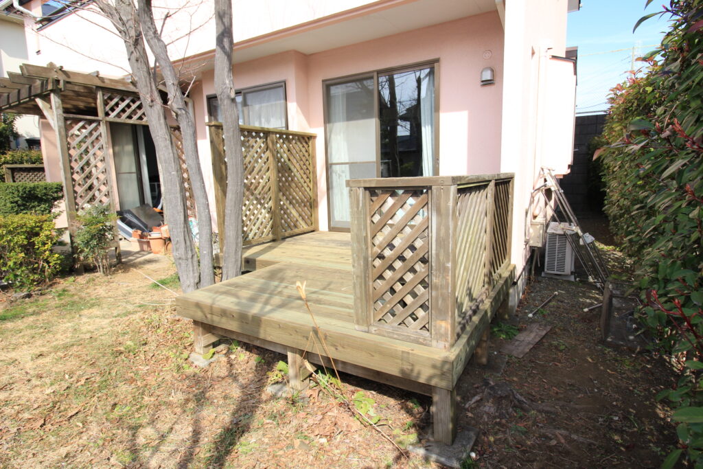 平成9年にお作りしたウッドデッキ。年数を経ていくと、住まい続けていても、ウッドデッキの使い方が家族構成などで変わっていく。