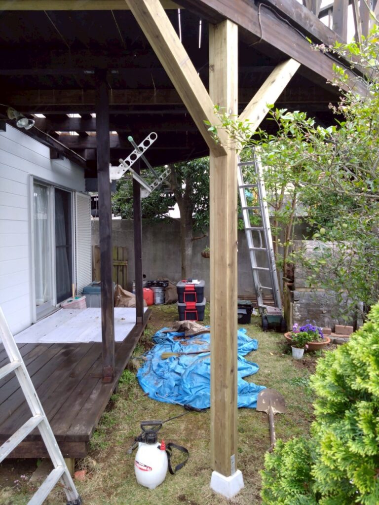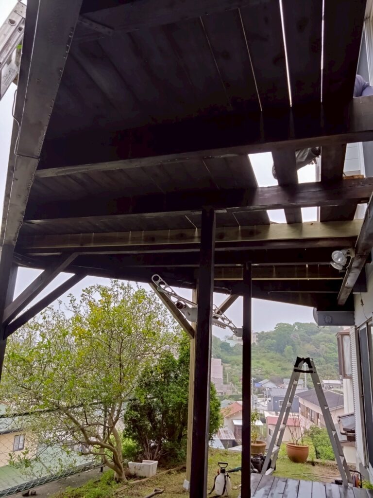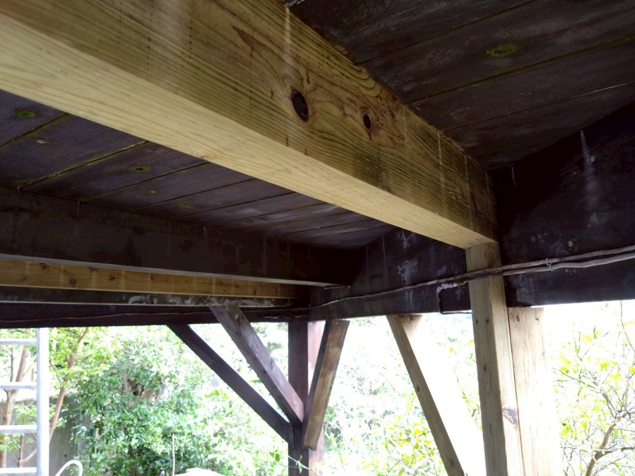 以前作られた他社製ウッドデッキの延命のメンテナンスと修理・・・足柄下郡湯河原町の広いベランダデッキ(景色もいい)