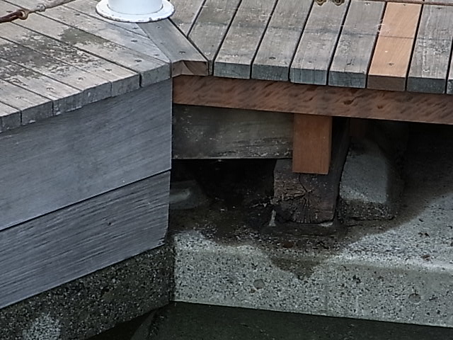 コンクリートと接触した土台のようなイペは腐りの兆候はあるが、まだ形は保っている。