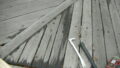 ただ、1カ所この折れ曲がった箇所の一部のビス穴が二重に並んでいたので、根太への打ち込みが効かない(根太の腐朽?)と気が付いてから意外な展開に。