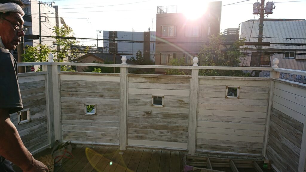 フェンスと床の色が引き立て合う。小窓がそよかぜを呼び込む気がして