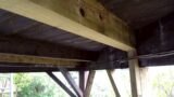 川崎市多摩区の木製パーゴラが庭の一角に、背の高い目隠しの木製フェンスの役目を持ちつつ建っています。