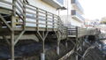横浜市青葉区の和風のお宅に、やはり和のイメージの縦桟のフェンスのベランダ施工。塗装も、高耐久のソフトウッドなので、ハードウッドと違って、塗料はなんでもよく載ります。