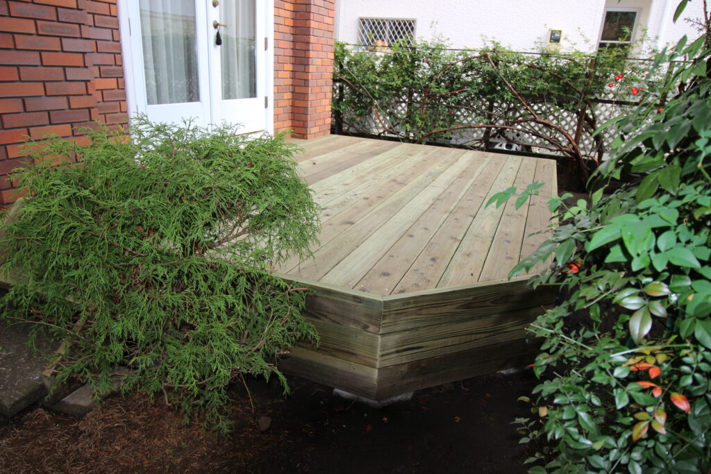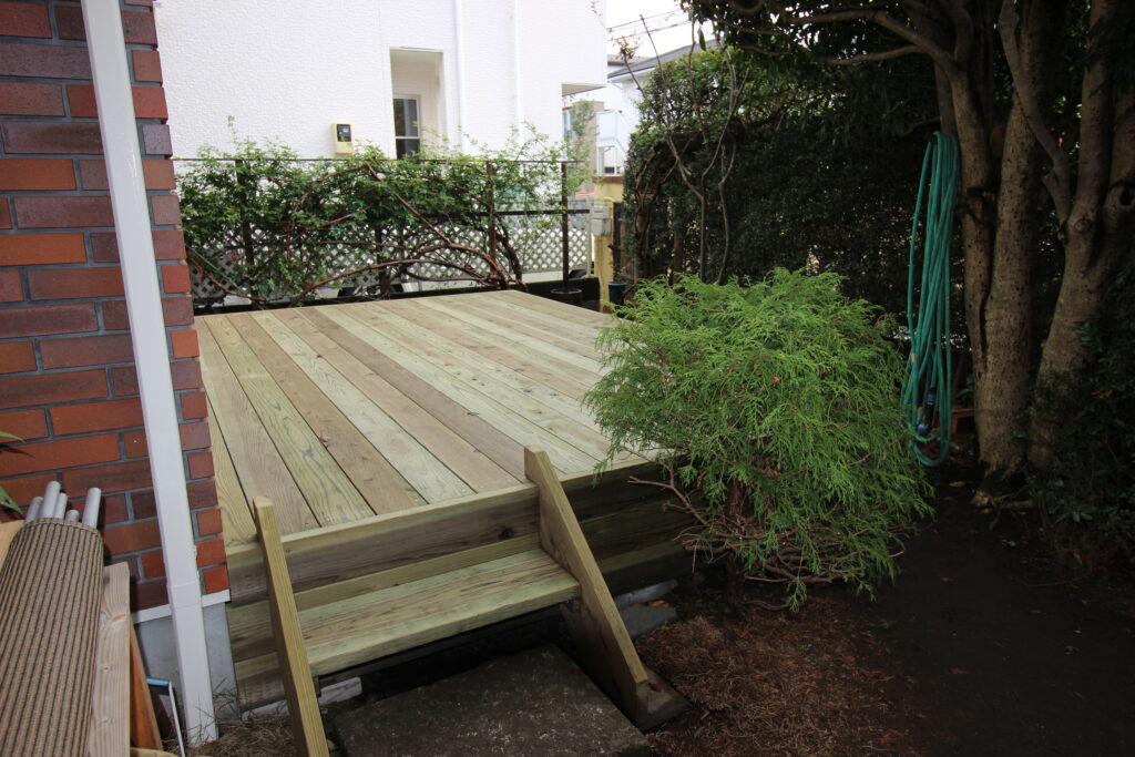 このウッドデッキも、時を重ねて本当の木の色になっていく。