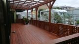 町田市の車庫上のウッドデッキの方は、このウッドデッキの下に来る車高とお客様の息子さんの身長から、十分な高さを取ると、このようにウッドデッキが上がってしまいましたが